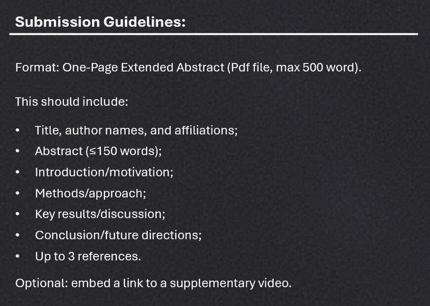 Camera-ready Poster Deadline: 1st December 2025Conference early bird registration Deadline: 20th October 2025
